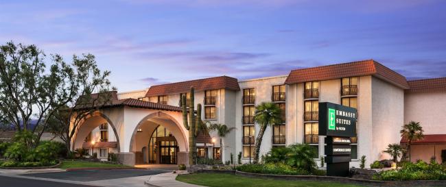 The Embassy Suites Scottsdale Resort is located less than a mile from Old Town Scottsdale, home to the Arts District, Entertainment District, the waterfront, and Fashion Square. The hotel five minutes from Scottsdale Stadium and downtown Phoenix is 12 miles away. The hotel features an on-site restaurant, two heated outdoor pools, and fitness center. Free hot breakfast buffet and complimentary evening reception are served daily for those staying on property.